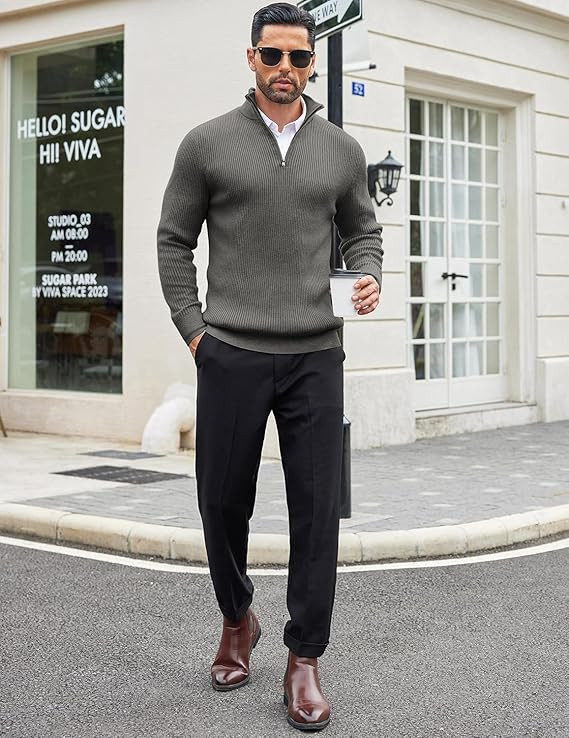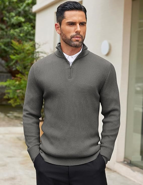 • FEATURES : This Quarter zip sweater for man is designed with ribbed cuffs and hem, quarter zip sweaters design, High neck polo collar sweater is stylish and casual. Suitable for autumn and winter.