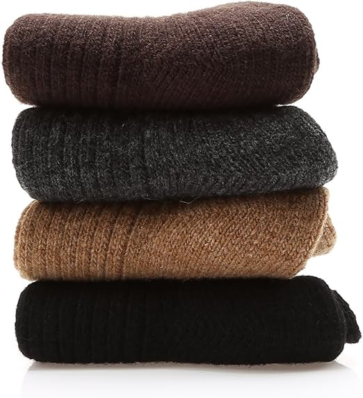 MIRMARU Men's Premium 4 Pairs Wool Classic Thick Winter Warm Crew Socks Collection