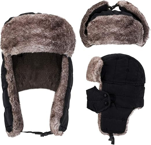 SATINIOR 2 Pcs Winter Trapper Hat and Gloves for Men Warm Ushanka Hat with Ear Flaps Mask Hunting Fuzzy Cap Touchscreen Glove